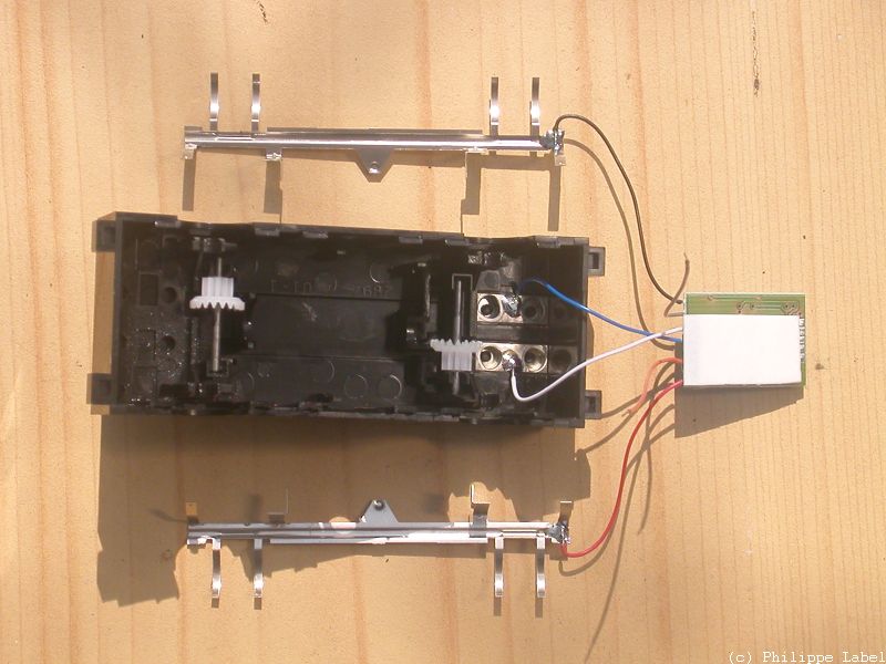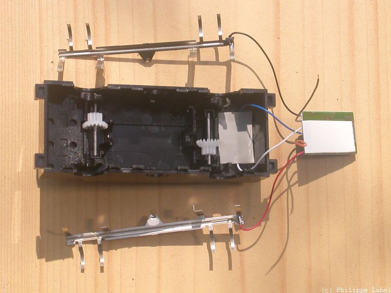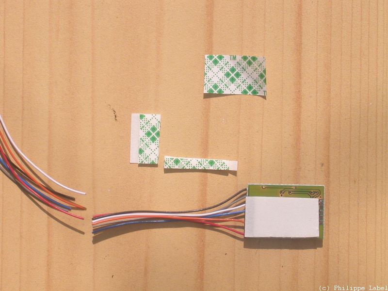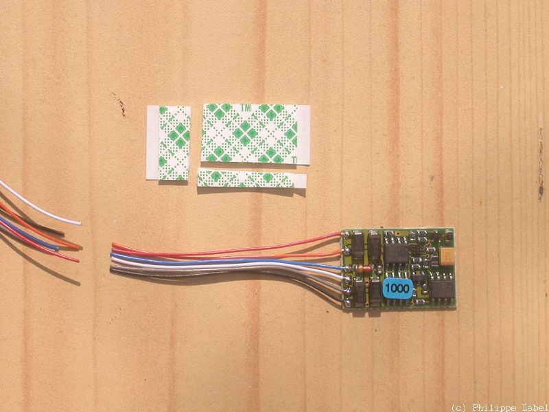 Remove 5 mm of plastic at six wires end of the decoder and tinplate